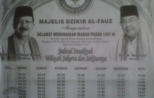 Ini salah satu oleh-oleh sewaktu membantu peneliti Jepang keliling Jakarta. Jadwak imsakiyah ini tertempel di sebuah mushola di sebuah kampung di Jakarta. Bukan jadwal imsakiyahnya yang menarik, tapi nama Majelis […]