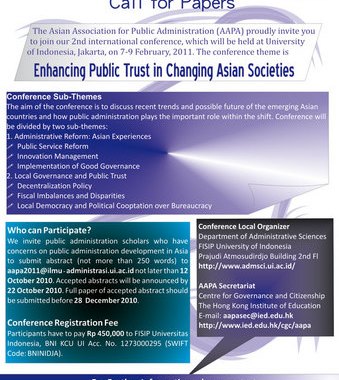 Berita dan Kegiatan 0 Call for Paper AAPA 2nd International Conference Berikut Call for Papers dari AAPA, mangga disimak. By www.abdul-hamid.com Diposkan pada September 21, 2010