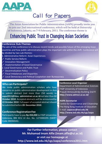 Call for Paper AAPA 2nd International Conference Berita dan Kegiatan Call for Paper AAPA 2nd International Conference Berikut Call for Papers dari AAPA, mangga disimak.