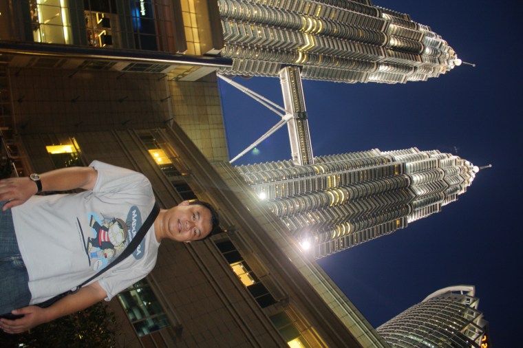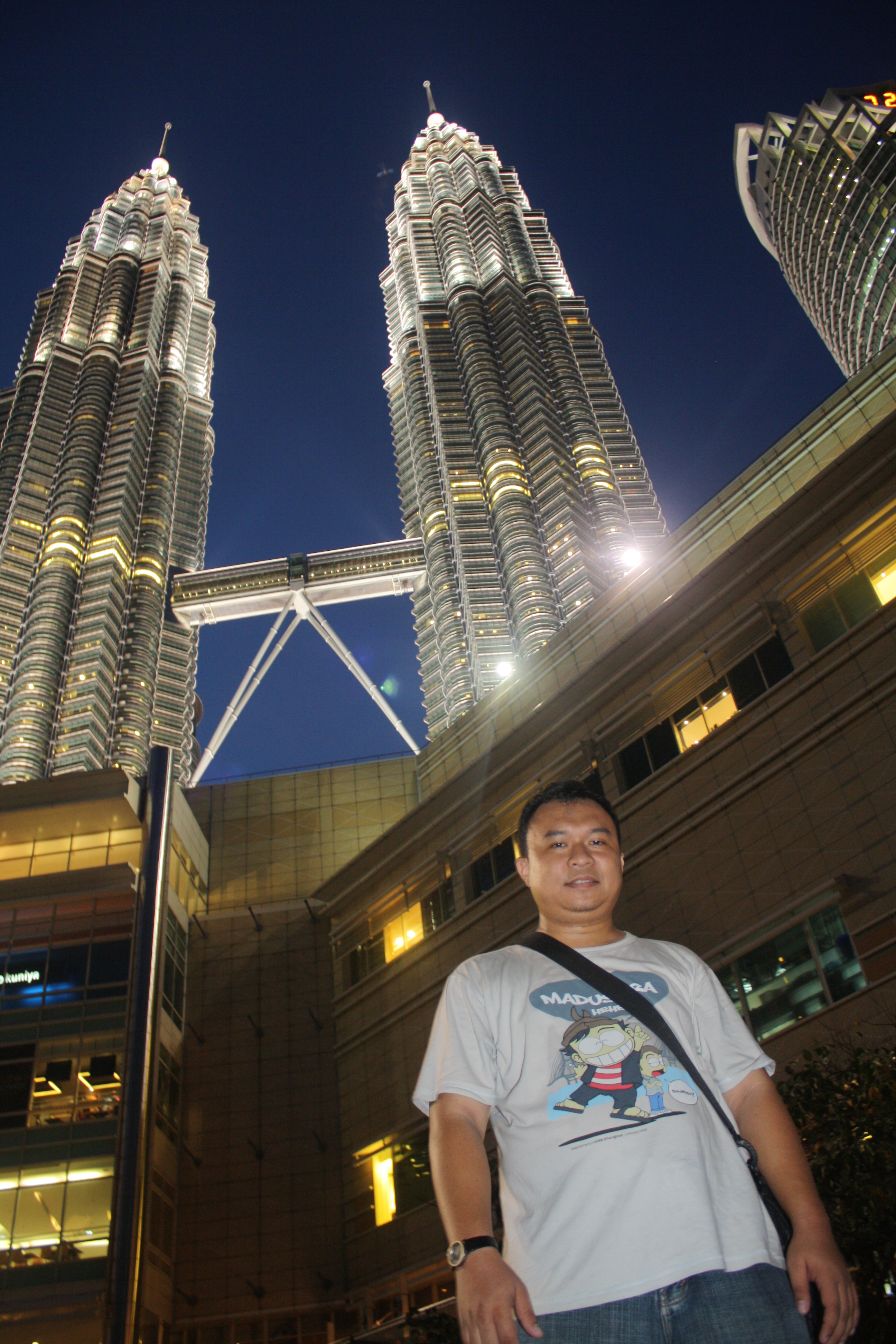 Leo mengajak kami ke Kuala Lumpur, pusing-pusing dan mengambil foto depan menara petronas. Setelah mandi kami segera bergerak ke kost Leo, makan rujak (semacam batagor dengan saus yang mirip tapi diisi bengkuang, dll; masakan india) dan menunggu kereta di stesen UKM.