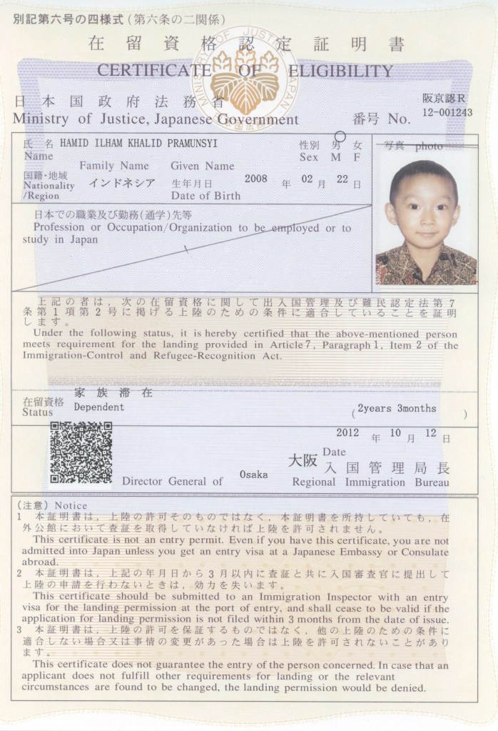 Pertama, Kita bisa berangkat bersama keluarga langsung. Lho bisa? Ya iya lah. Kita tentu saja bisa mengurus visa sebagai mahasiswa, sementara keluarga mengajukan visa sebagai turis. Tentu saja persyaratan keduanya berbeda. Untuk visa sekolah menggunakan CoE (Certificate of Application) yang dikirimkan kampus, sementara untuk visa turis keluarga bisa menggunakan undangan yang dikirim kerabat atau teman di Jepang. Begitu sampai di Jepang, sebagai residence saya mendapatkan resident card, sementara keluarga tidak. Nah sekitar sebulan setelah di Jepang, keluarga bisa mengajukan alih status dari turis menjadi dependant residence ke imigrasi Jepang. silahkan ambil formnya di  website imigrasi jepang.