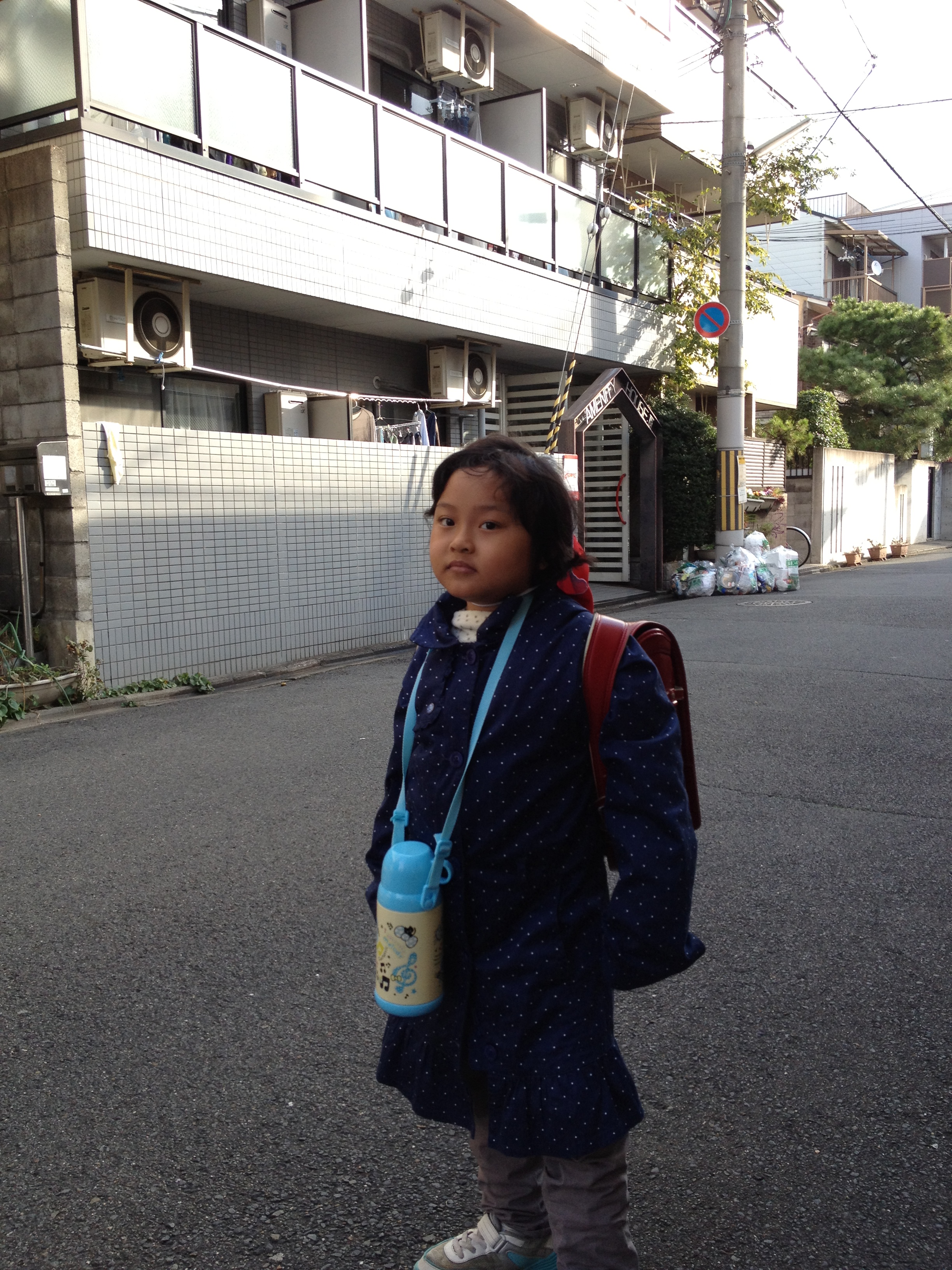 Pihak SD menyambut Ayu dengan hangat. Ayu langsung diperkenalkan ke kelas, teman-teman dan guru-nya. Ayu juga mendapatkan pelajaran tambahan bahasa jepang seminggu dua kali. Gratis dari sekolah, dan muridnya cuma Ayu saja. Ternyata besoknya langsung mesti masuk, jadilah sore kami mencari perlengkapan: kaos olahraga, topi, alat bekal sekolah, sepatu dalam ruangan. Untunglah untuk randoseru (tas khas anak SD), Ayu mendapatkan hadiah dari Bude Tari yang tinggal di Kobe. Oh ya, setiap bulan Ayu harusnya membayar 4000 yen untuk makan siang, namun kami dapat subsidi karena Abahnya mahasiswa beasiswa.