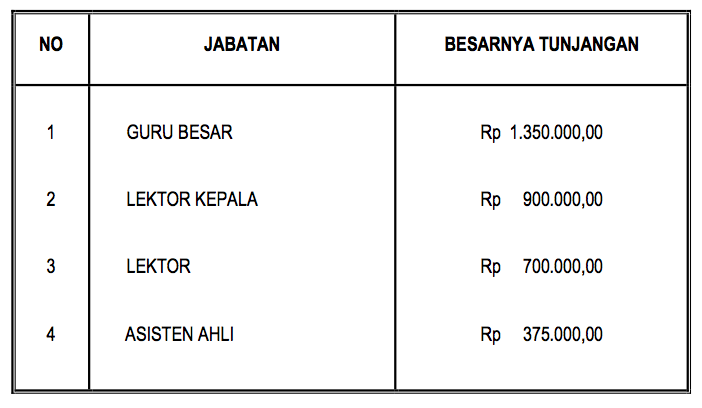 Hmm katakanlah asisten ahli setara peneliti pertama, lektor setara peneliti muda, lektor kepala setara peneliti madya dan profesor setara peneliti utama, nampaknya para dosen akan bersemangat untuk sekolah doktor. Tentu saja lebih bersemangat mengejar selisih dari Rp. 3.000.000,-  dikurangi 1.750.000,- daripada hanya mengejar selisih Rp. 900.000,- dikurangi Rp. 700.000,- kan?