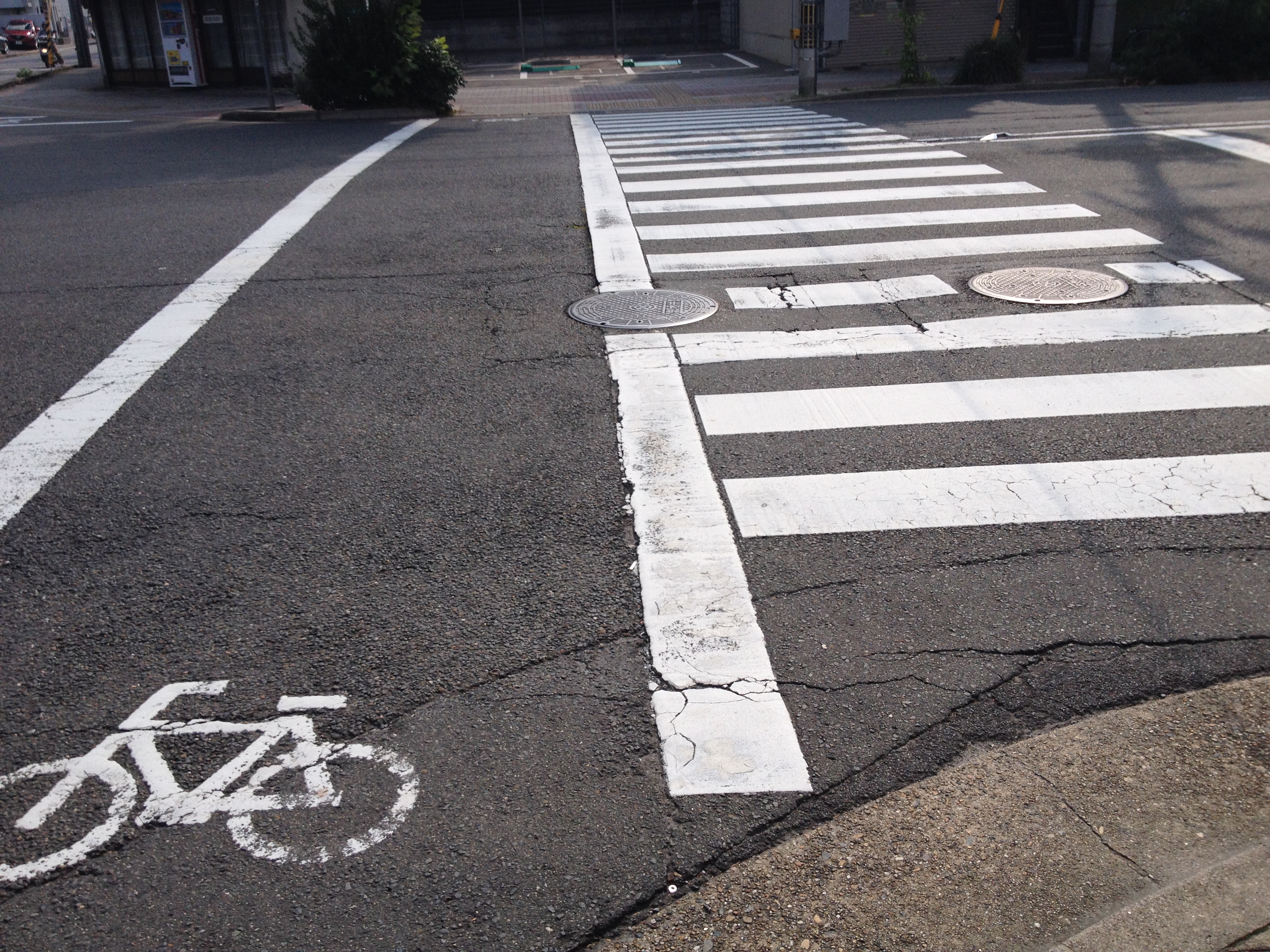 Ini yang membuat nyaman bersepeda di Kyoto, lajur sepeda baik di zebra cross maupun di pedestrian.