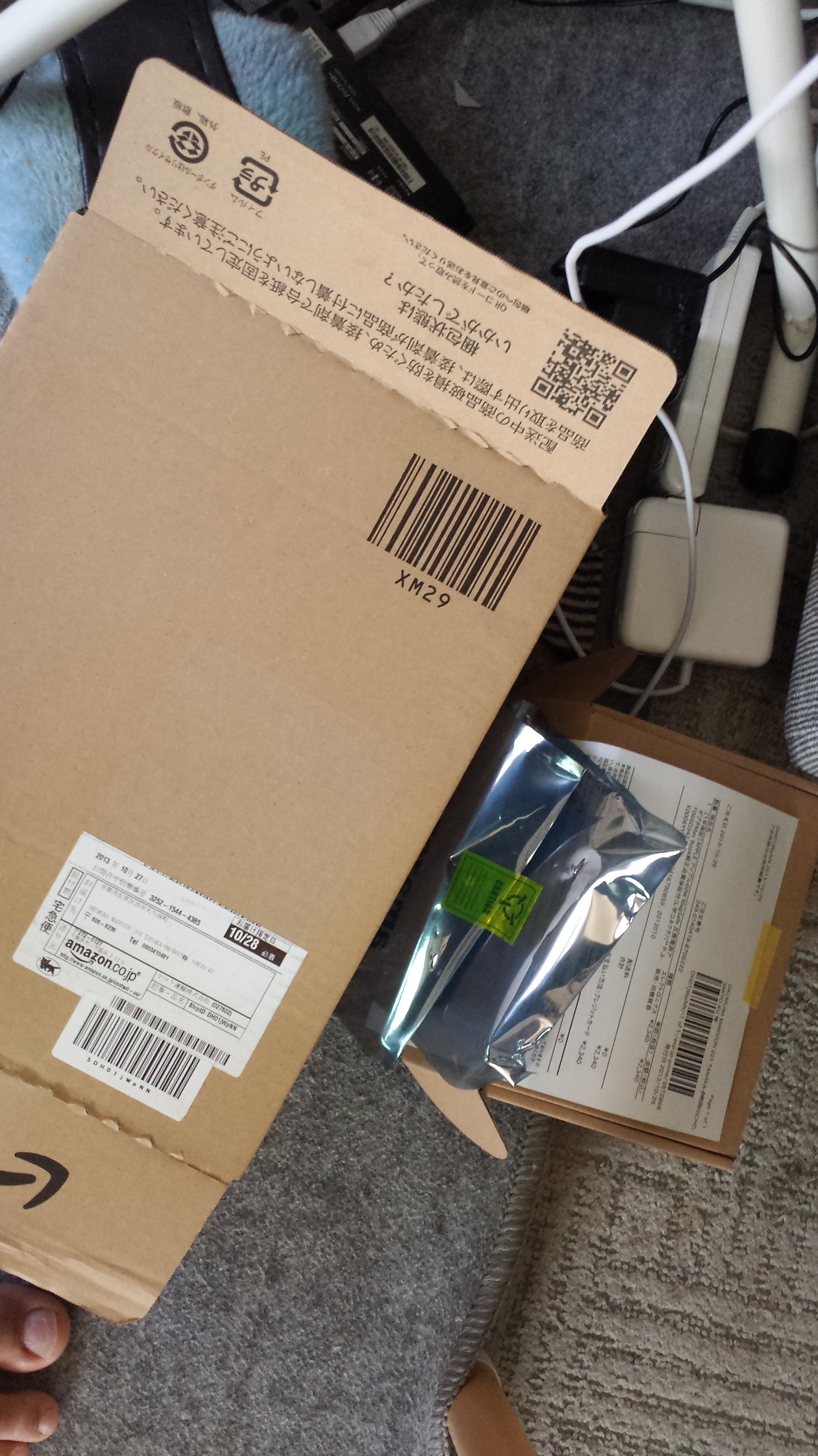 Akhirnya memberanikan diri buka amazon.co.jp dan mengetik keyword magsafe. Wah kaget juga ternyata harganya sedang miring, diskon 51%, jatohnya sekitar 2500 yen. Langsung pesen dan barang akan datang hari senin. Setelah berhari minggu tanpa laptop, akhirnya mamang-mamang yang logonya kucing datang, sekitar pukul 11 pagi.