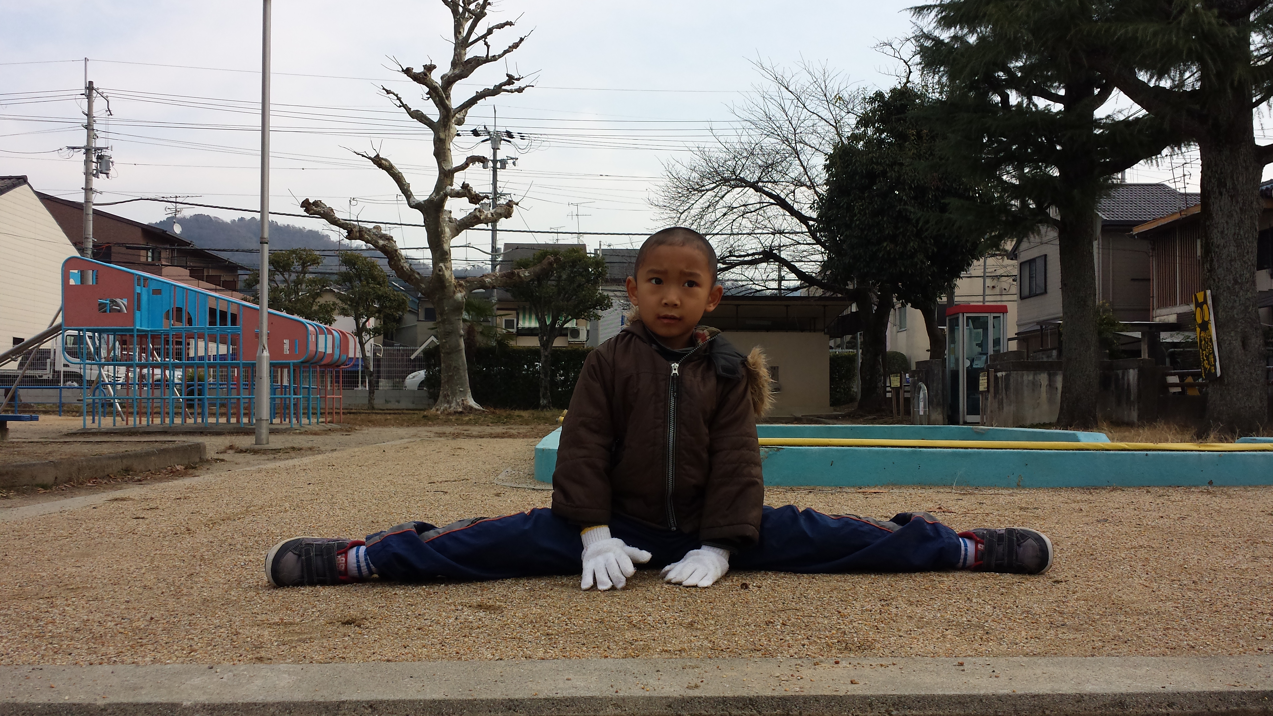 Nah setelah beres olahraga aku duduk-duduk dan tiba-tiba Ilham meniru gerakkan splitku tadi. Langsung sempurna !!!