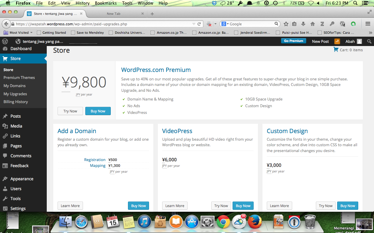 wow, dalam yen!!? ternyata bisa juga yah sewa fomain di luar store wordpress 🙂 tapi resikonya tekor di mapping!