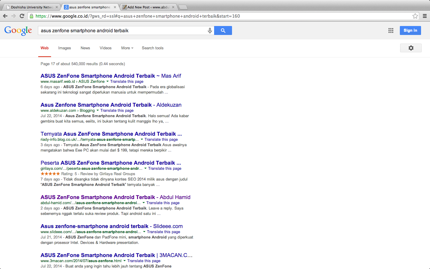 Hari ini jam ini, begitu tulisan ini dicari di google, masih nangkring di halaman 17.