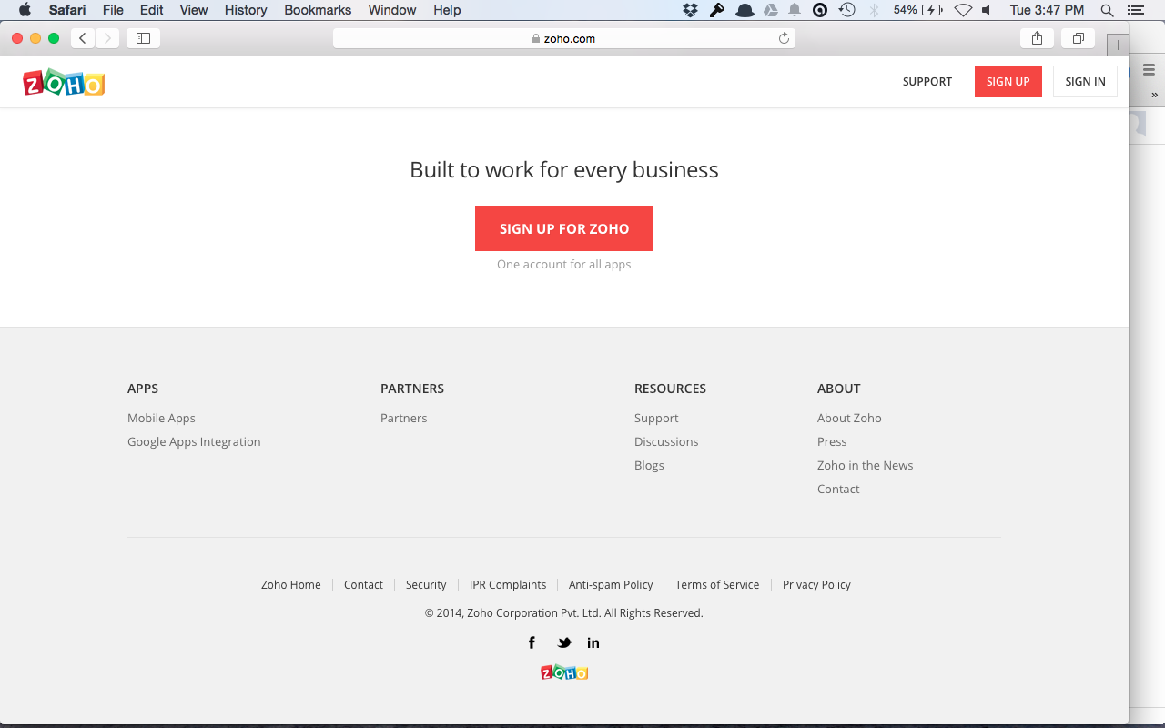 1. Buka http://www.zoho.com, scroll ke bawah dan klik “sign up for zoho”
