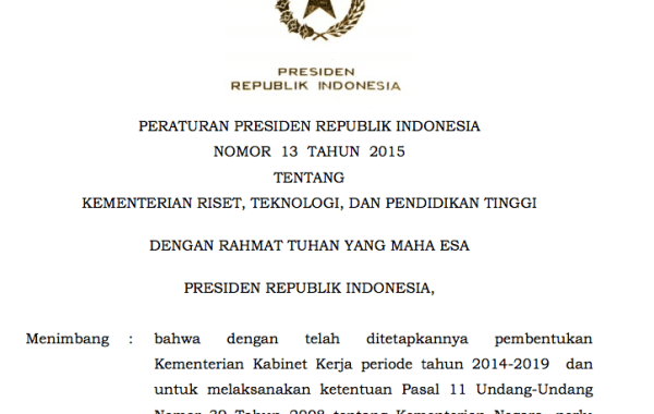 Perpres 13 tentang Kementerian Riset, Teknologi dan Pendidikan Tinggi