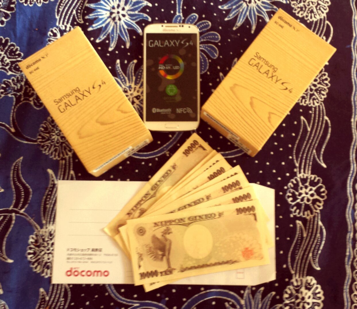 Smartphone di Jepun biasanya menggunakan sistem berlangganan. Nah kali ini saya memakai Samsul S4 dari docomo. Dulu hijrah dari softbank karena alasan pragmatis, dapet cashback 40.000 yen (empat puluh ribu yen). Dasar mahasiswa kismin mata duitan, langsung berpaling begitu saja (baca ceritanya di sini). Jadilah waktu itu menggunakan Samsul S4 menggantikan Ipin 4S. Oh ya, nomornya dengan sistem MNP bisa tetap sama, akhirannya sesuai tanggal lahir saya: 10481 😉