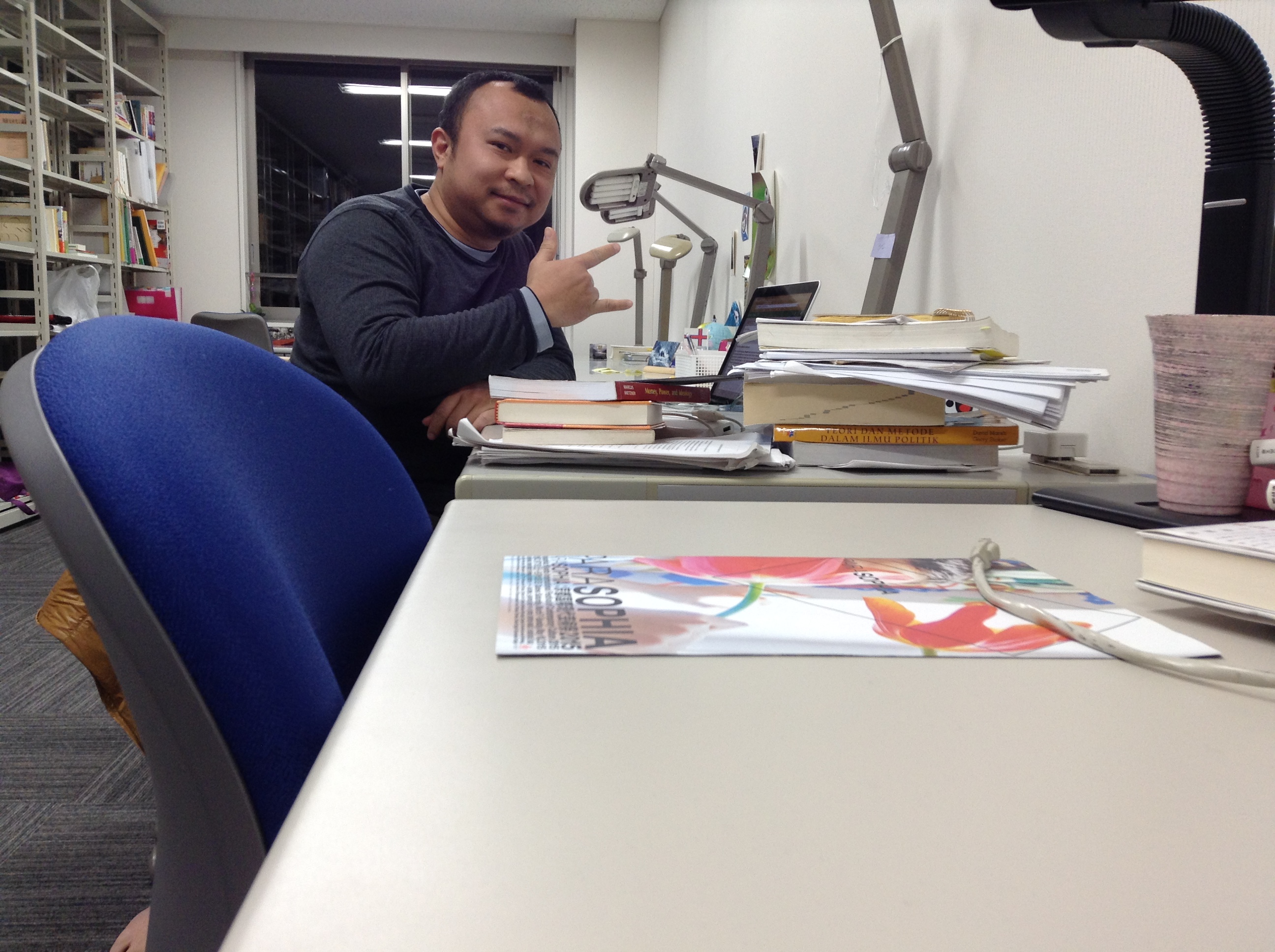 Lihatlah foto di bawah ini, di masa libur di kala mahasiswa S2 pada liburan dan teman2 lain (terutama orang Jepun) banyak juga yang pulang kampung, saya masih di kampus malem-malem begini, mengerjakan “sesuatu”sambil dengerin manusia bodohnya Ada Band. Sendirian pula di ruangan segede ini, hanya ditemani jam weker yang berdetak dan suara cekikikan yang suka dateng dari jendela. Duh kok jadi merinding…