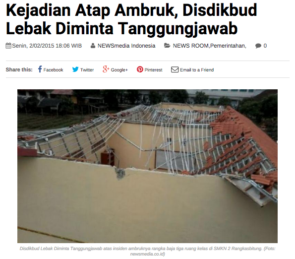 Jika contoh-contoh di atas terlalu canggih, ada yang lebih sederhana: jalan rusak padahal baru sebulan dibikin, atap sekolah rubuh, alat kesehatan dimark-up, dan sebagainya.