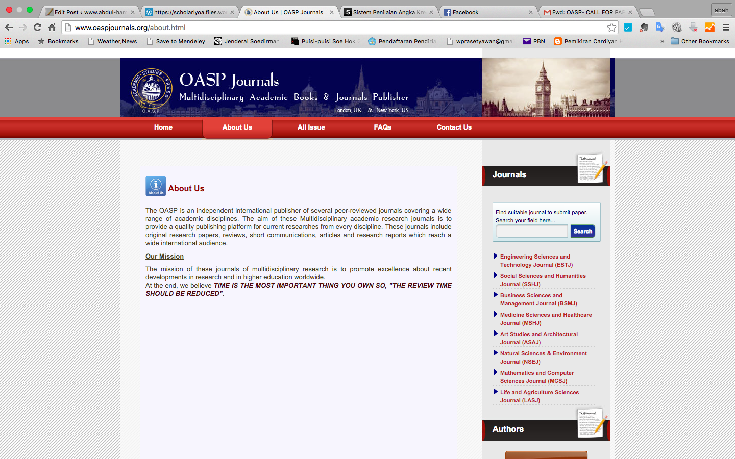 Saran saya: lupakan saja, cari yang lain. OASP/Oxford ASP di atas juga mengaku (saya ndak mengecek) bahwa mereka terindeks Thomson Reuters.