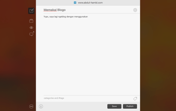 Yups, saya lagi ngeblog dengan menggunakan blogo, sebuah aplikasi yang terpasang di macbook. Antarmukanya oke, dengan dashboard yang membuat kita bisa fokus menulis.Oh ya, blogo sedang gratis di iTunes, ditambah […]